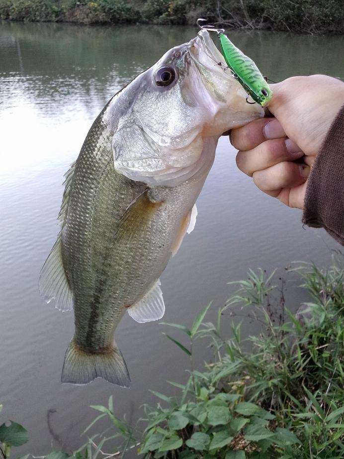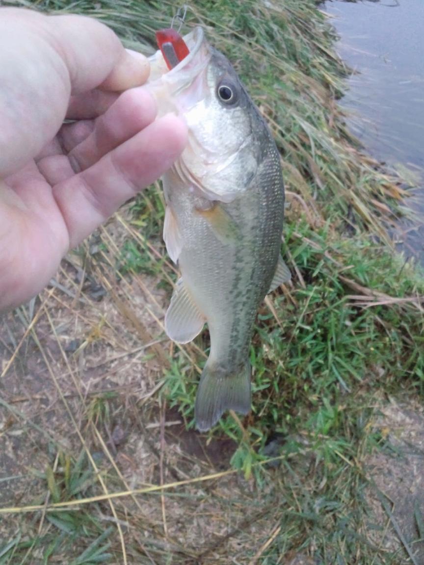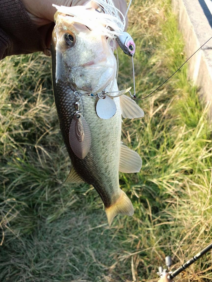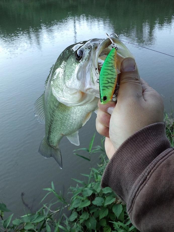 小さいとはいえ、周りが釣れていない中、自分でセレクトしたルアーや攻め方で釣れたバス!!