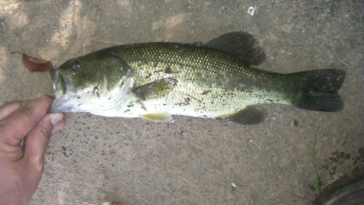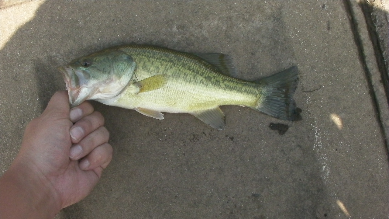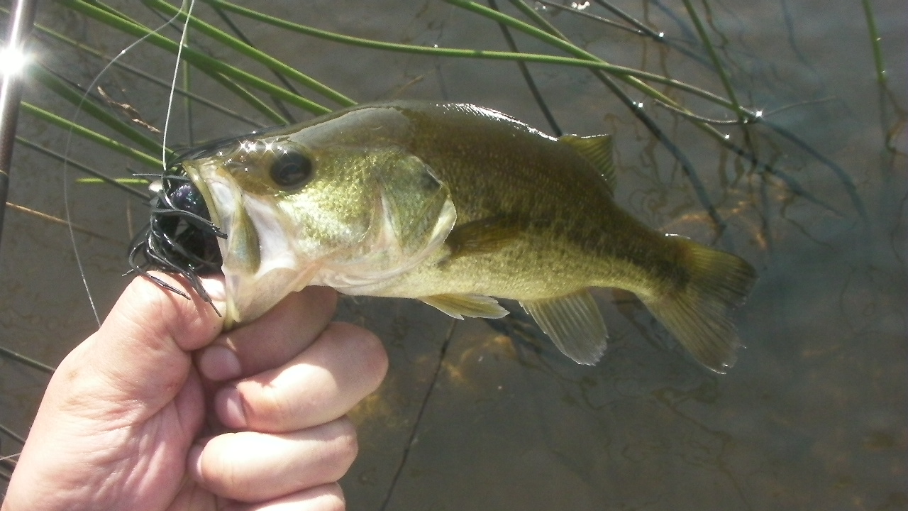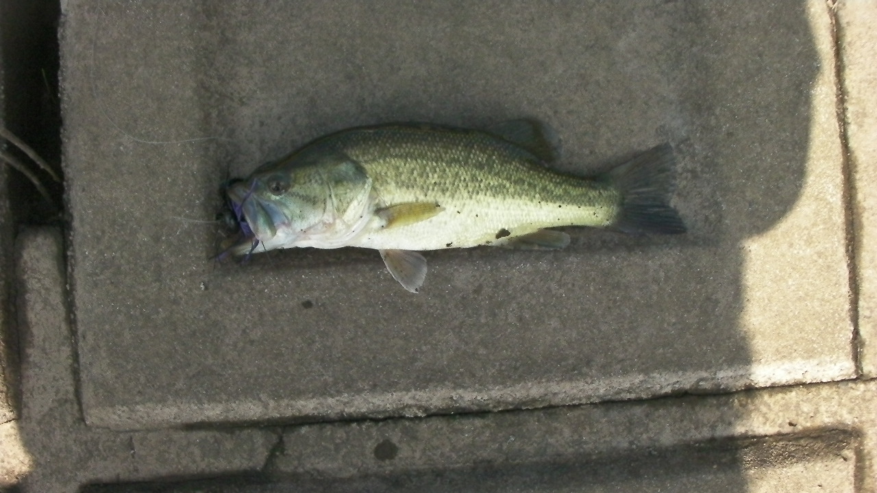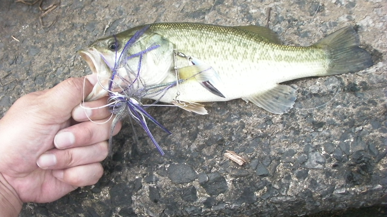 「ここなら小バスは釣れるだろう・・・えいっ!」