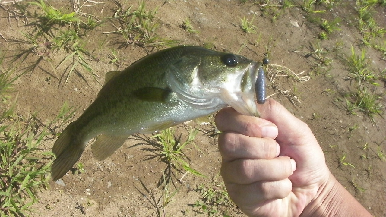 ですが、またもやスイングインパクト2インチの乱れ投げで、1匹10cmちょいの超小バス(スモール)捕獲。