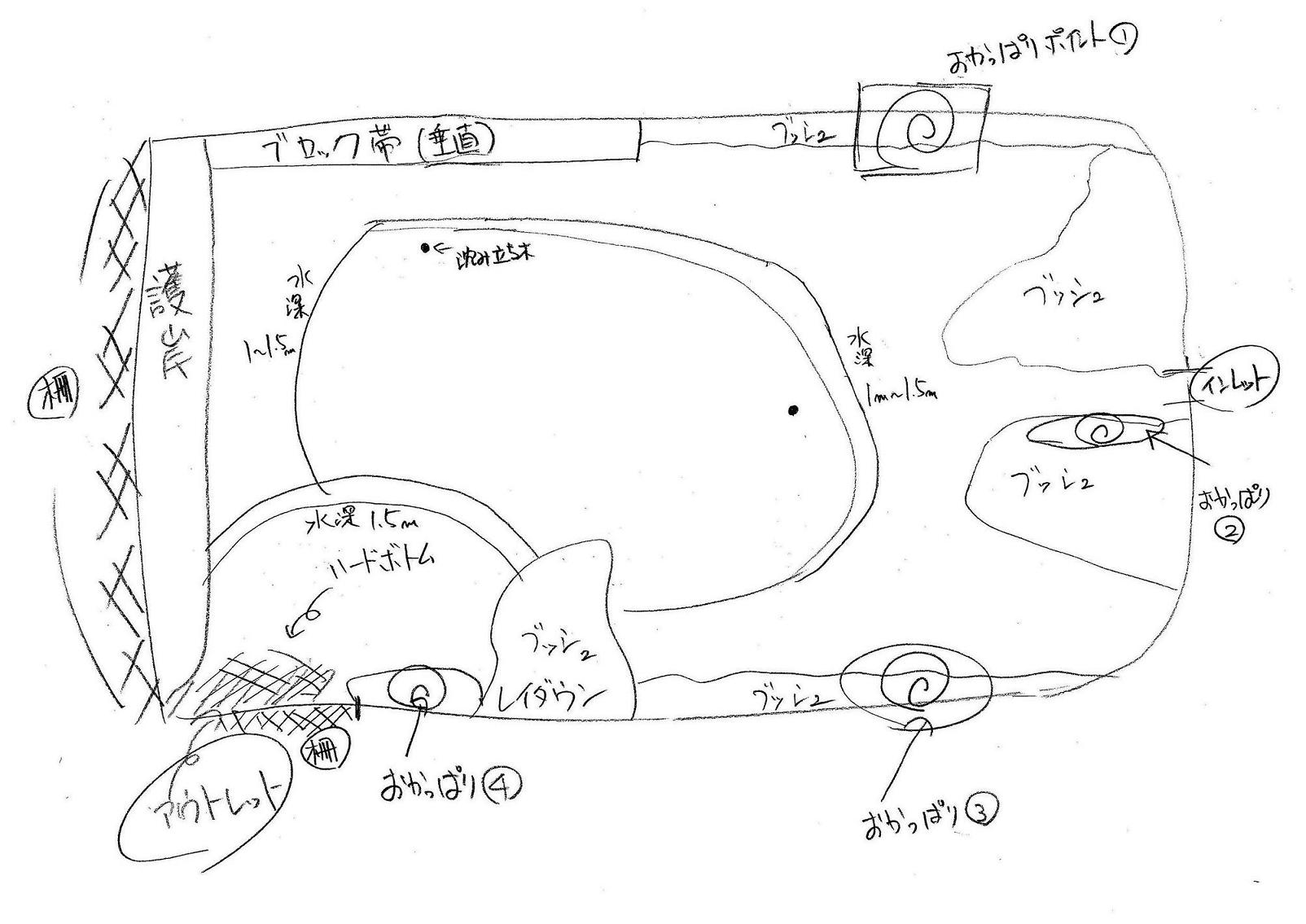 先日の釣行で、アウトレット付近の底に違和感を感じたのです。