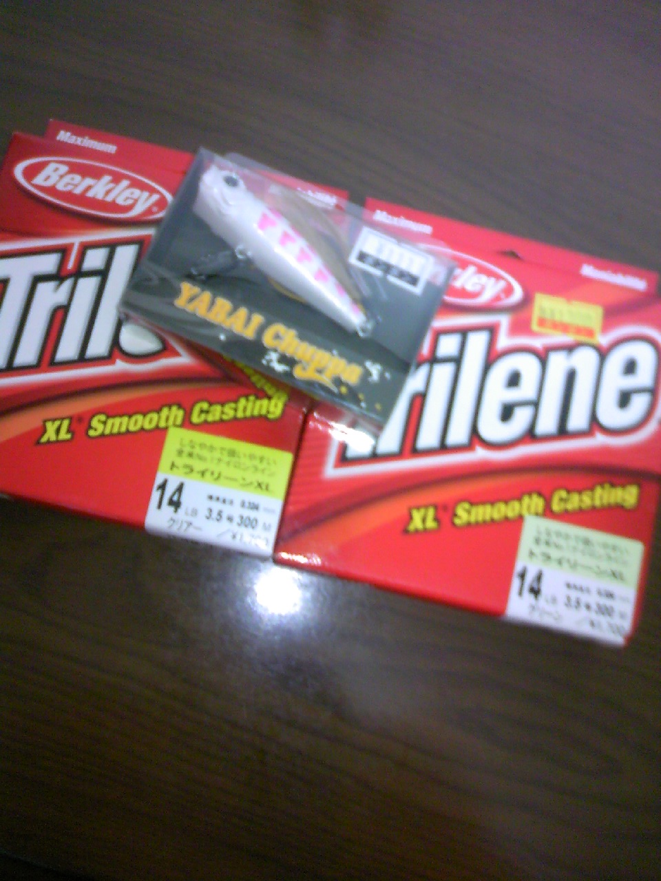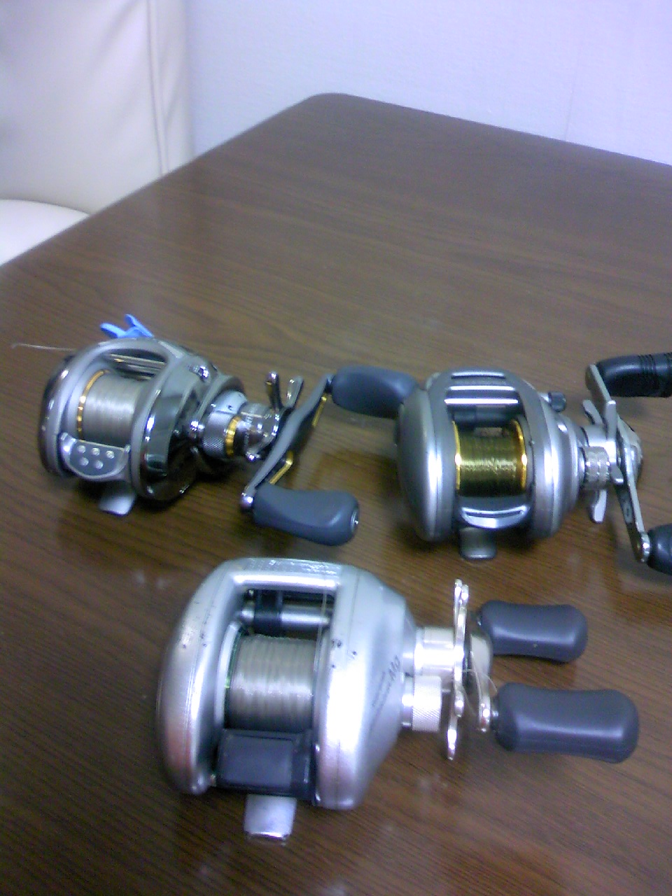 んでもって、フルーガーとメタmgに14lbのナイロンのやっすい同じラインを巻きました。